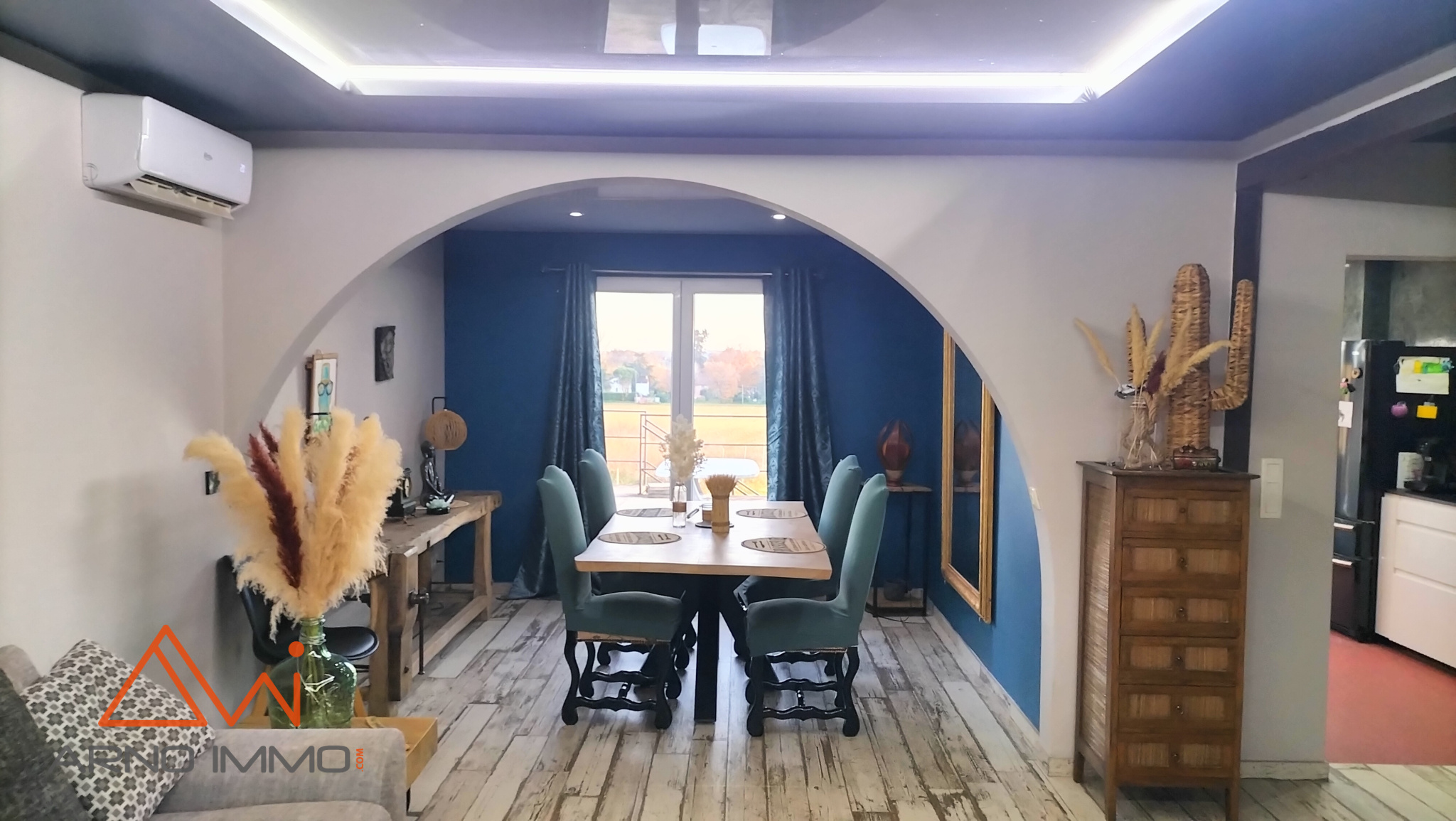 Cette habitation d'un peu plus de 170 m², rénovée sur environ 135 m² avec plafonds tendus, chauffage rayonnant et climatisation vous offre ces 5 chambres son salon salle à manger et sa cuisine, le tout agrementé d'une terrasse panoramique coté sud et ouest. De plus, le rez de chaussée est en grande partie aménagé sur environ 35 m² avec, en plus, un garage/buanderie de près de 50 ,m²,vous permettant ainsi de finaliser differents projets. Le tout sur un très grand terrain d'un peu moins de 7600 m² et qui comprend une grande dépendance servant d'atelier et de garage à ce jour sur une surface au sol d'environ 120 m². .