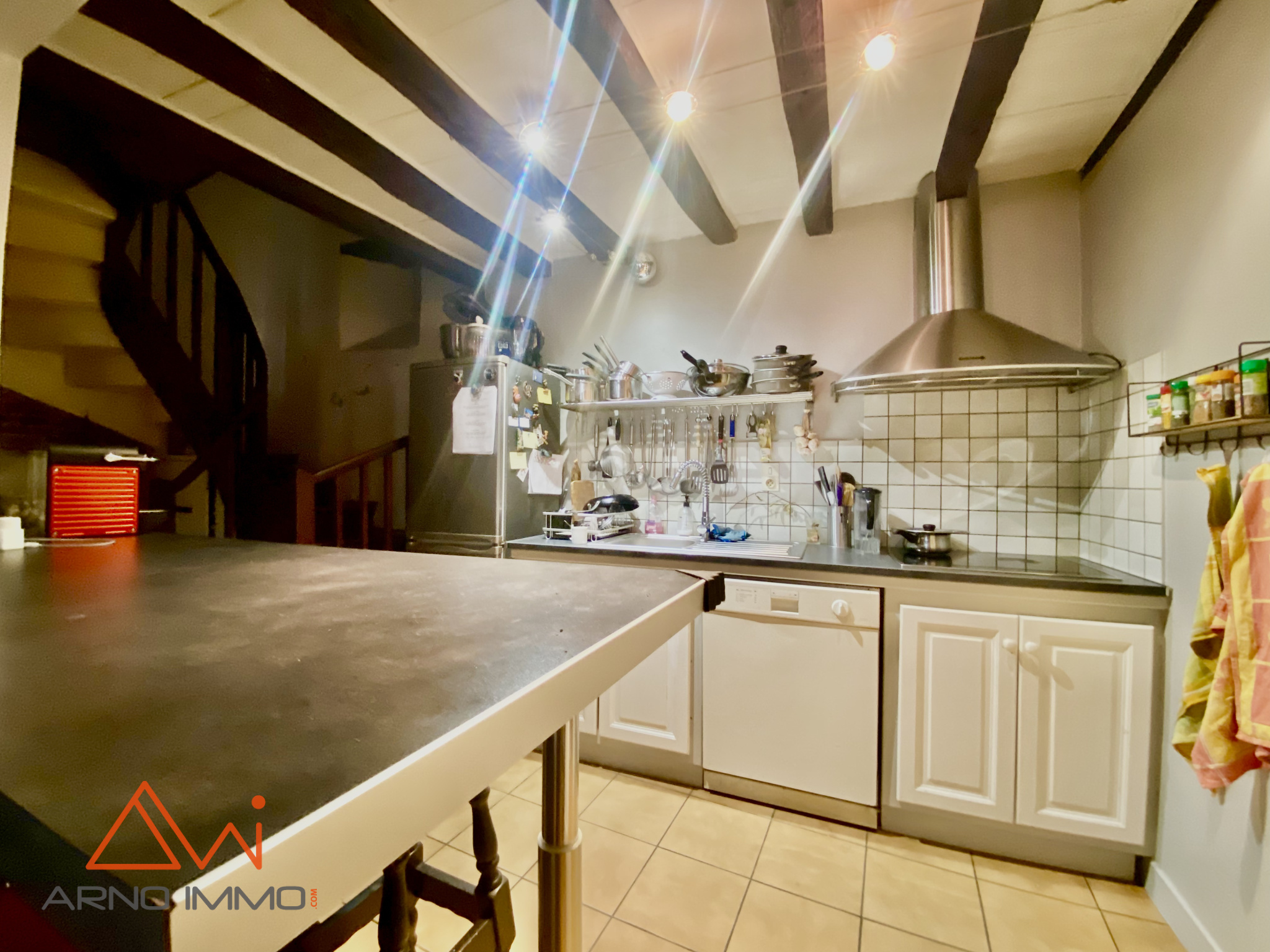La seconde bâtisse, mitoyenne peut offrir la possibilité soit d’étendre la partie existante soit de créer un logement indépendant en R+1 d'environ 70m² avec le charme de la maison à colombage.