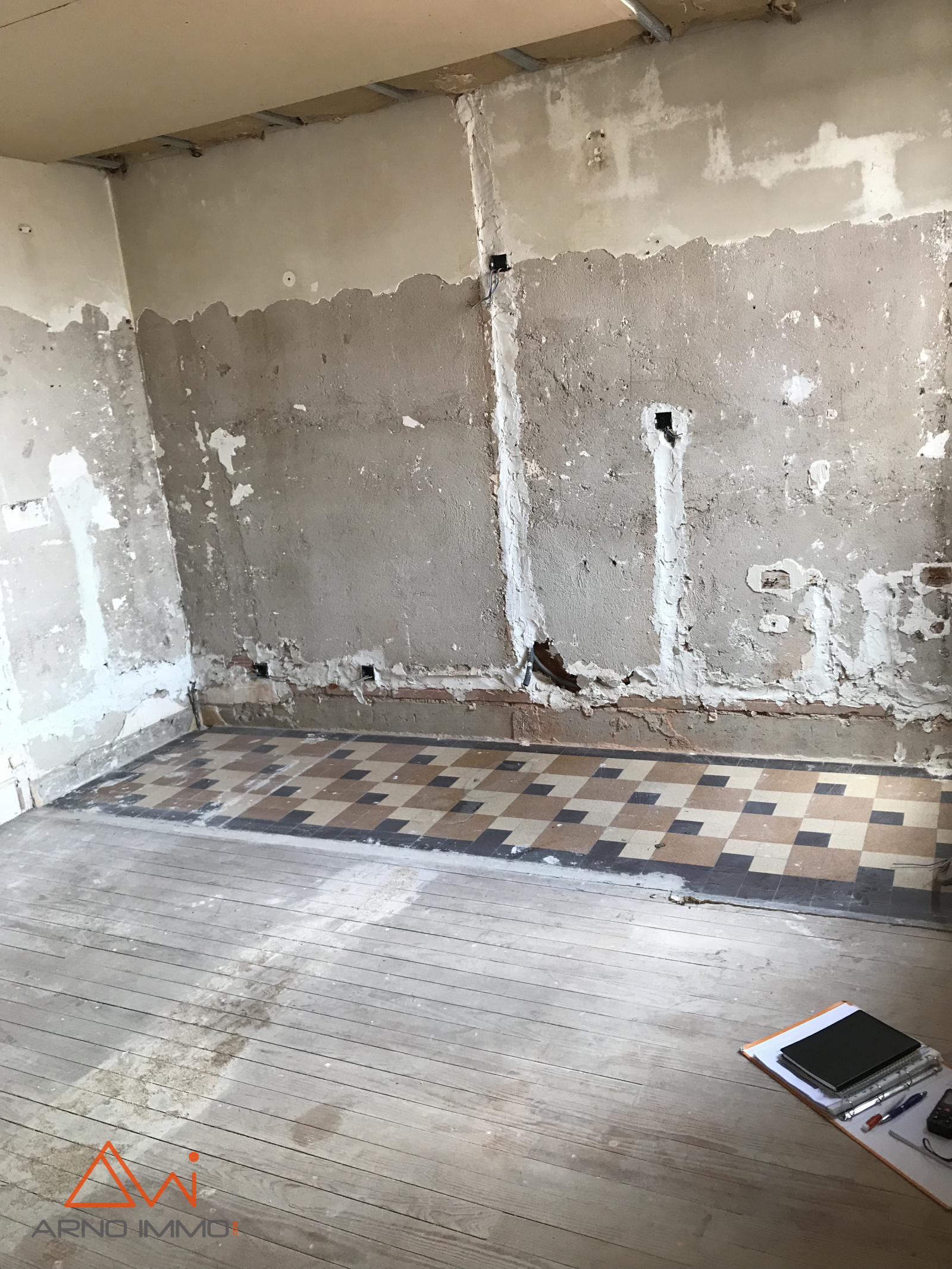1er étage : séjour lumineux de 24 m² et une pièce de 15 m² pouvant être aménagée en cuisine