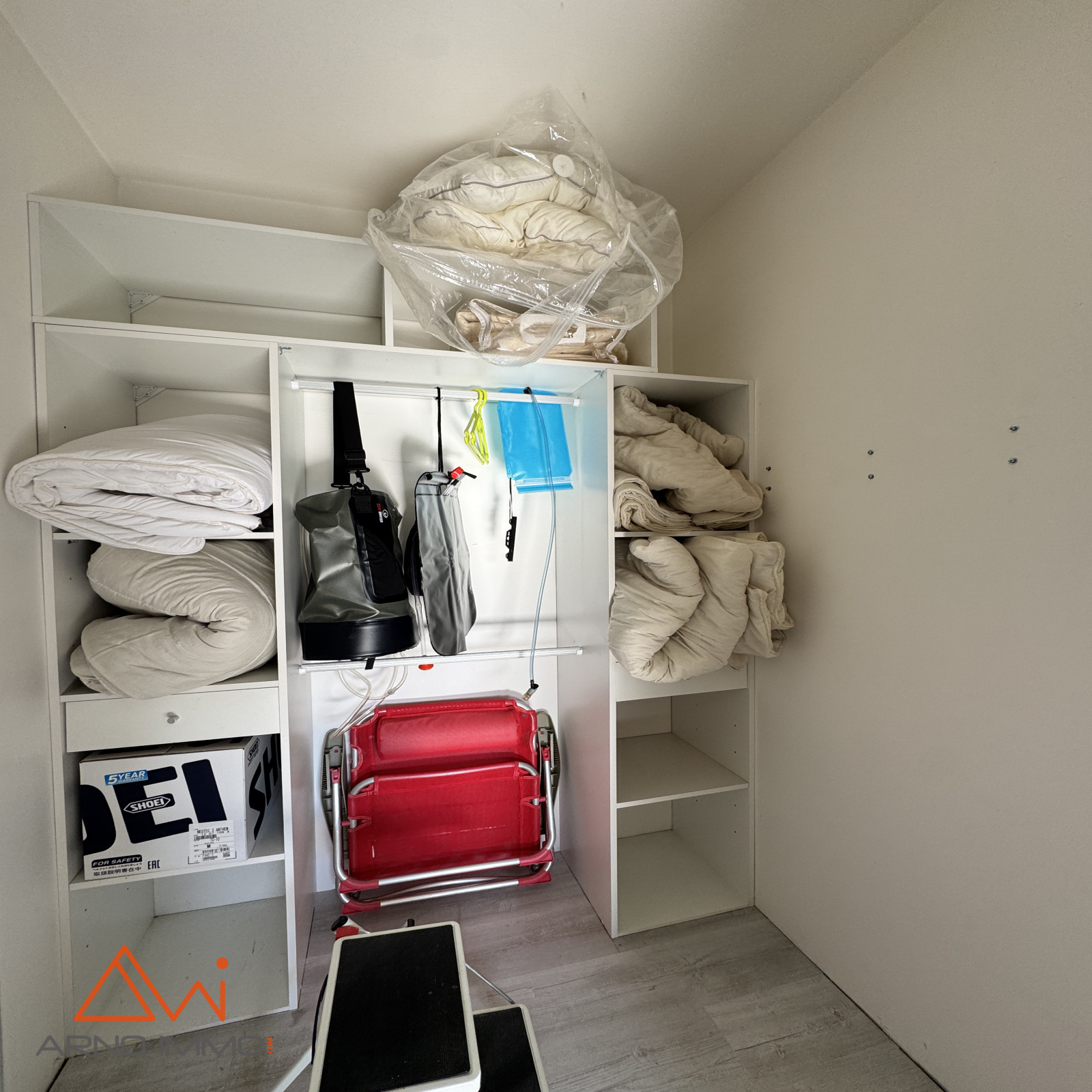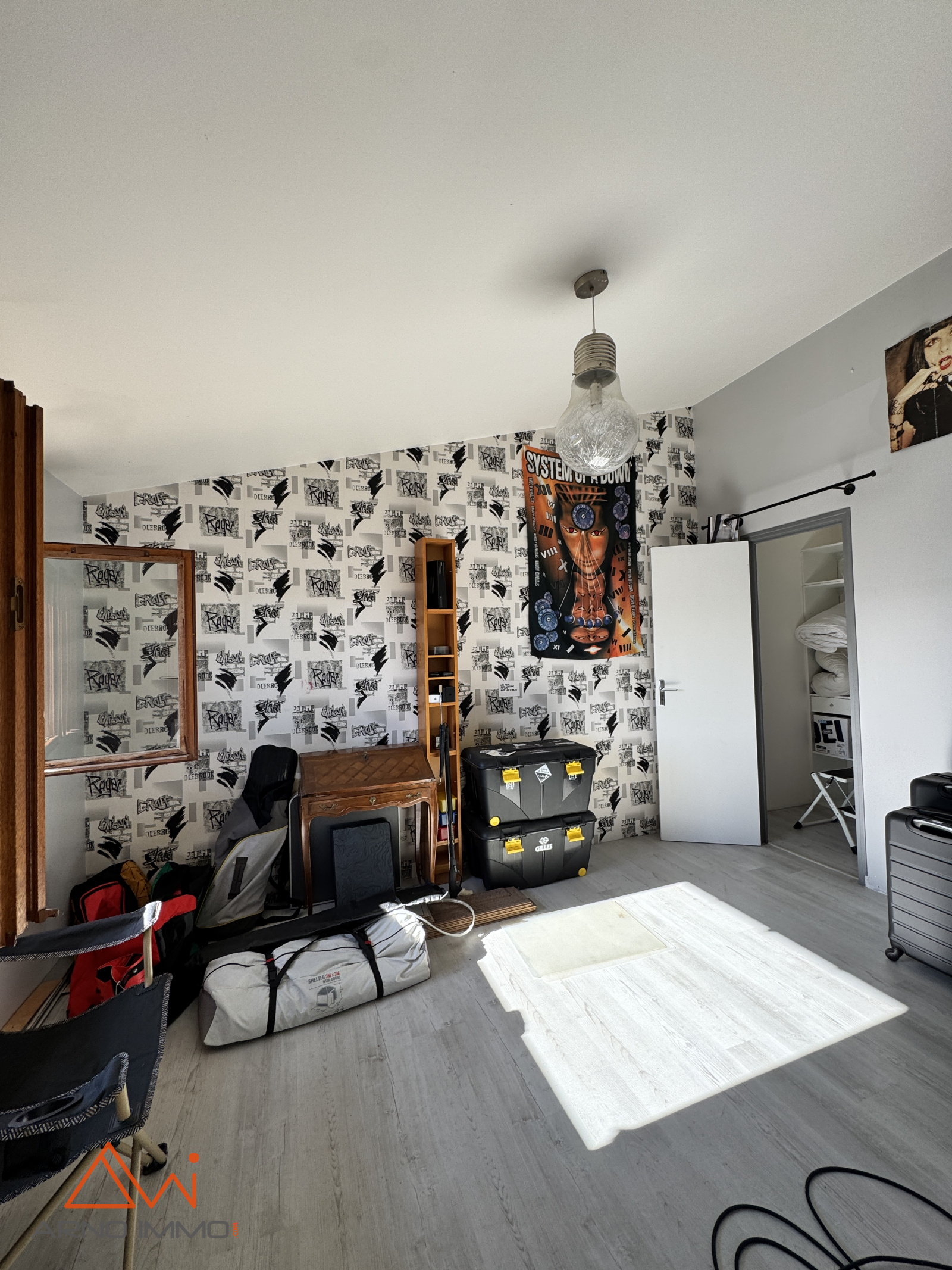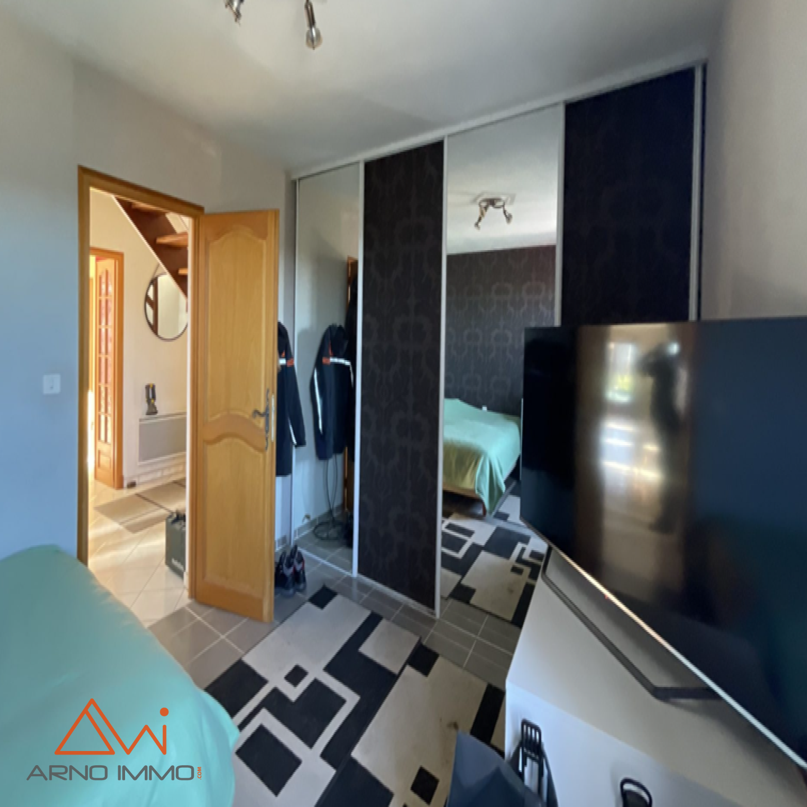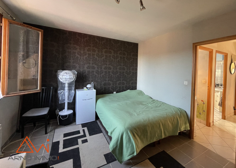 À l’étage, un vaste palier distribue deux chambres supplémentaires, chacune dotée de son petit dressing, créant des espaces intimes et bien organisés. L’ensemble est en bon état général, et la maison se distingue par sa luminosité constante.