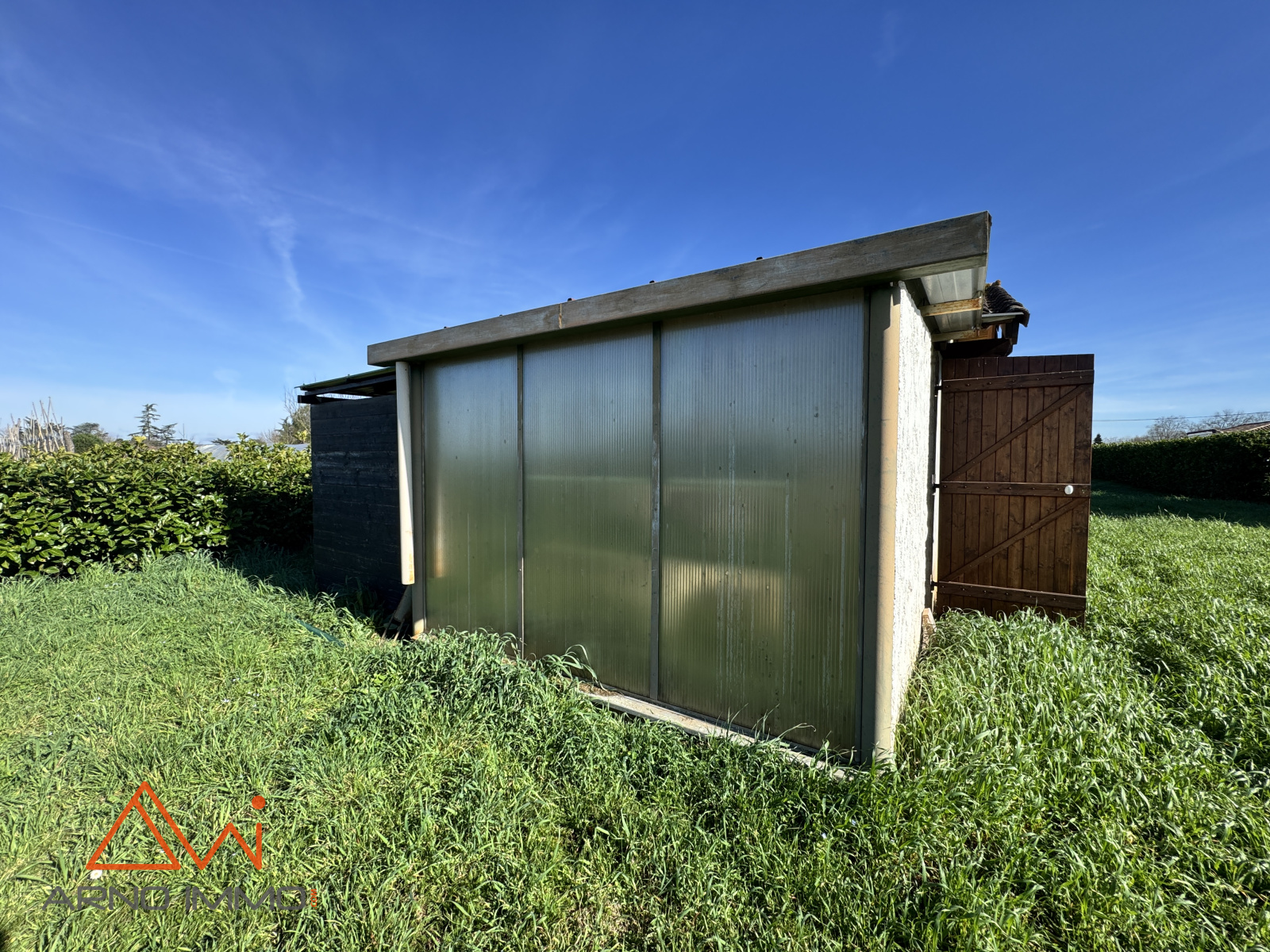 - une seconde dépendance carrelée et isolée, prolongée à l’arrière par un espace indépendant faisant office de pool house, auxquels s’ajoutent un local jardin équipé d’un panneau translucide, idéal pour les semis ou la protection hivernale des plantes, ainsi qu’un appentis dédié au stockage du bois.