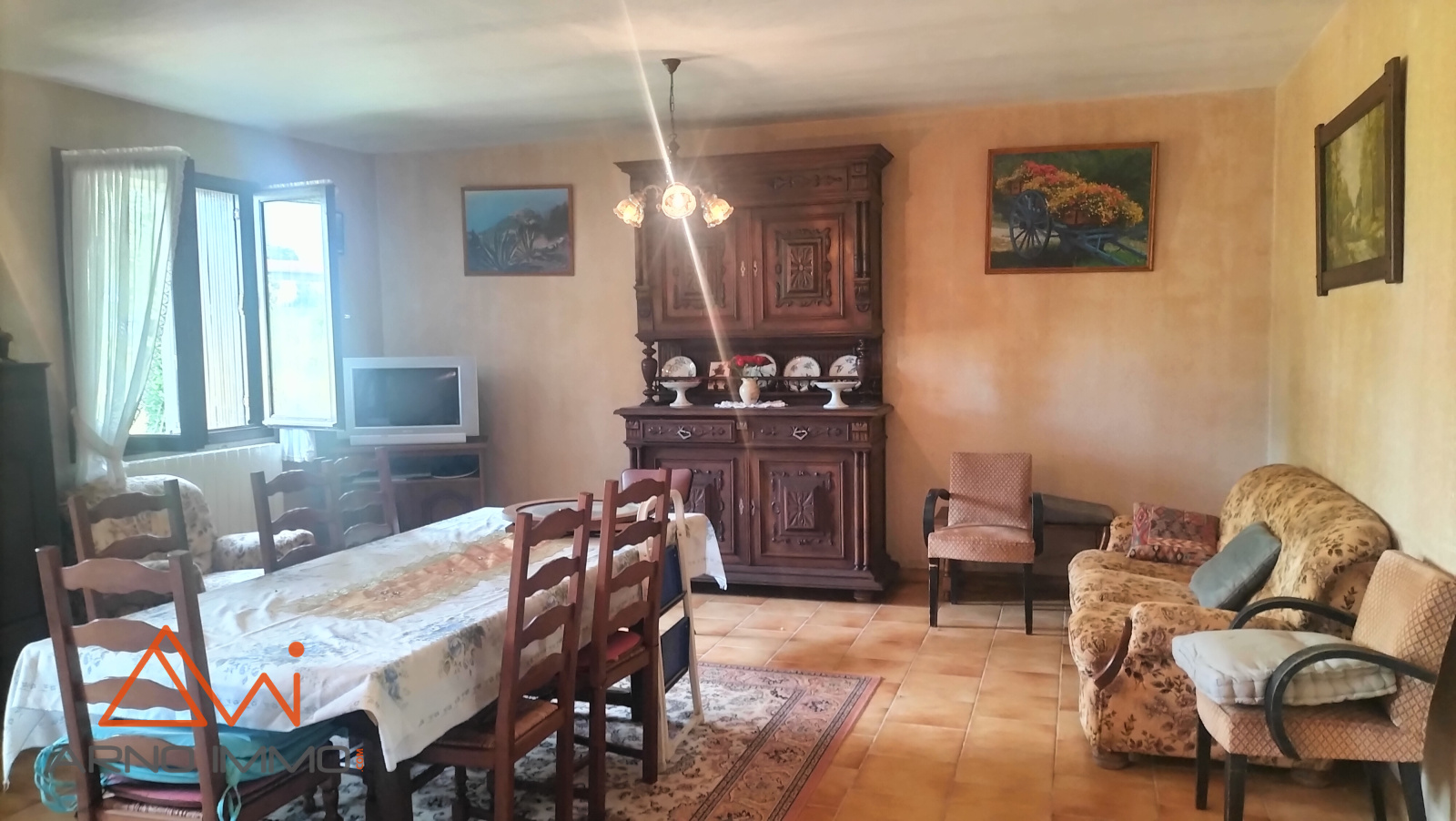 Le rez de chaussée comporte une cuisine , une grande salle de sejour modernisée, 2 chambres et une salle d'eau refaite avec douche italienne.
