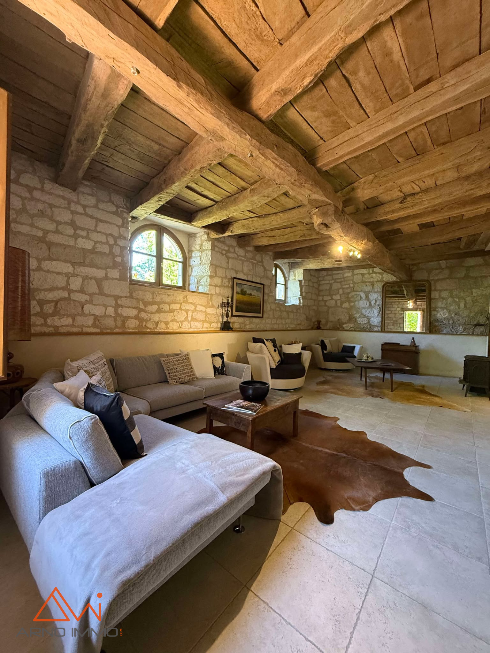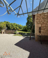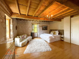 La maison se compose de 11 pièces :Une pièce d'accueil dans le pigeonnier, une cuisine familiale entièrement équipée, deux salons aux ambiances distinctes, une buanderie, une cave, un espace bureau avec sur chaque côté des combles, ainsi que 4 chambres spacieuses, dont deux suites avec salle d’eau et dressing ainsi qu'une salle de bain indépendante. Deux anciennes étables faisant office de garage et d'atelier font parties de la batisse en pierre et sont surmontées d'une ancienne grange disponible, soit environ 300m² de dépendances. Les matériaux anciens: poutres, pierres apparentes, sols en terre cuite, ont été sublimés avec goût, conférant à l’ensemble un charme rare.