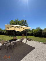 À l’extérieur, le terrain arboré de près d'un hectare avec son ancien puits, soigneusement entretenu, garantit intimité et sérénité. Une piscine 10x5, une terrasse de 20 m² et plusieurs espaces invitent à la détente, dans un environnement sans vis-à-vis.